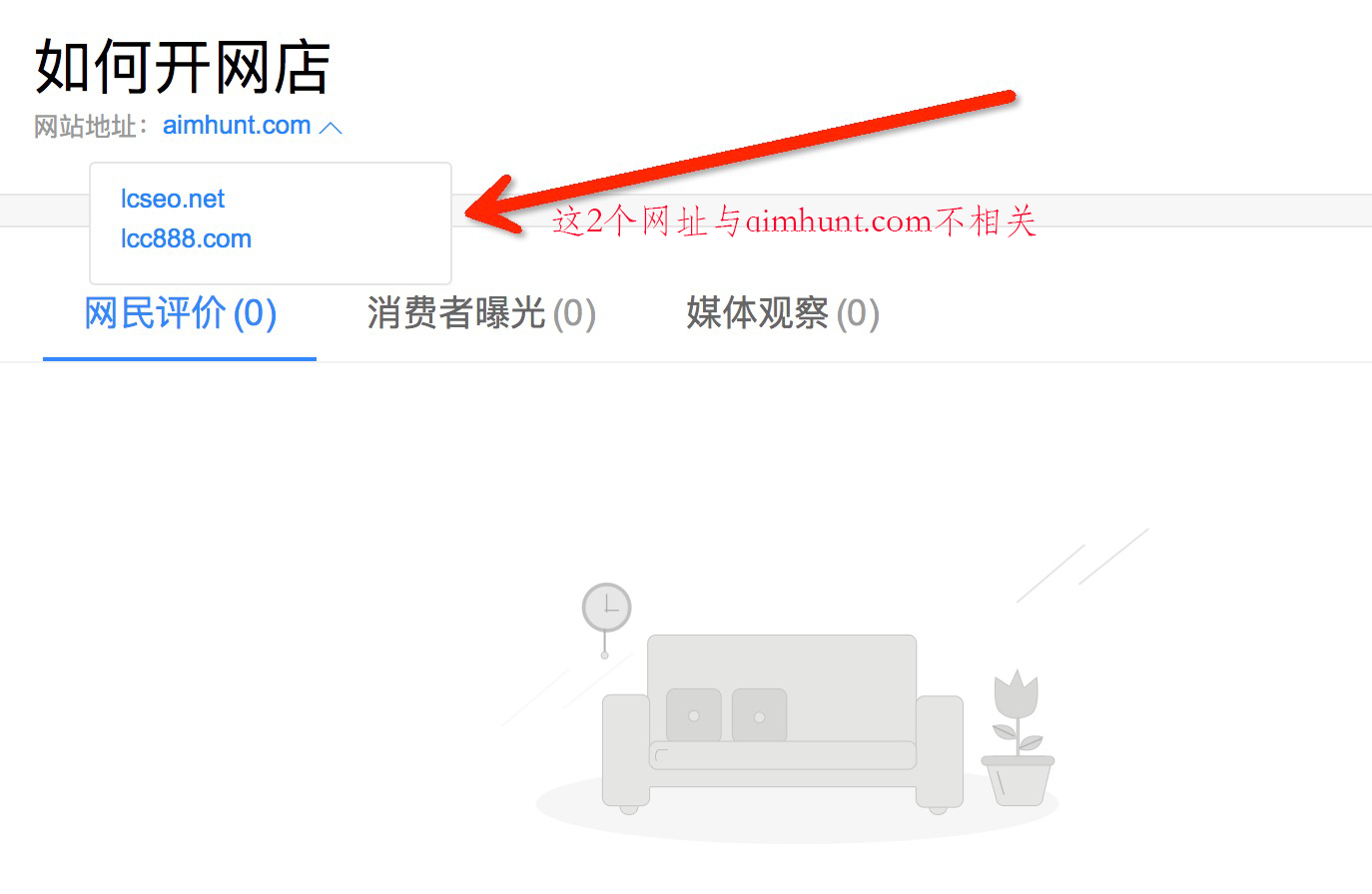 开网店运营百度口碑收录本小站时有个小错误。。。 2017 年 2 月 16 日2017 年 3 月 16 日 - by taylor 刚刚发现本网站 目标网 网址 http://www.aimhunt.com 被 百度口碑( koubei.baidu.com ) 收录了,但是却有点小问题,看图: 把其他的与本网站不相关的网址列在一起了,好像那两个网址也是本网站的一样。而实际上,完全不是。 对此,我只想谈谈地说句,百度口碑你是根据什么把不同网址列在一起当做同一个网站的?你不知道你已经搞错了吗?