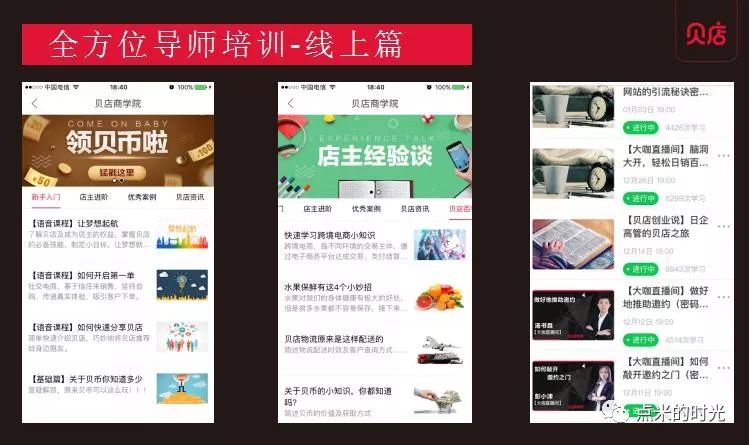 开贝店就算我们没有任何基础也没有关系,有专业的免费培训课程,有商学院,有团队培训,只要你肯学,就能快速做起来,都能把贝店做好。