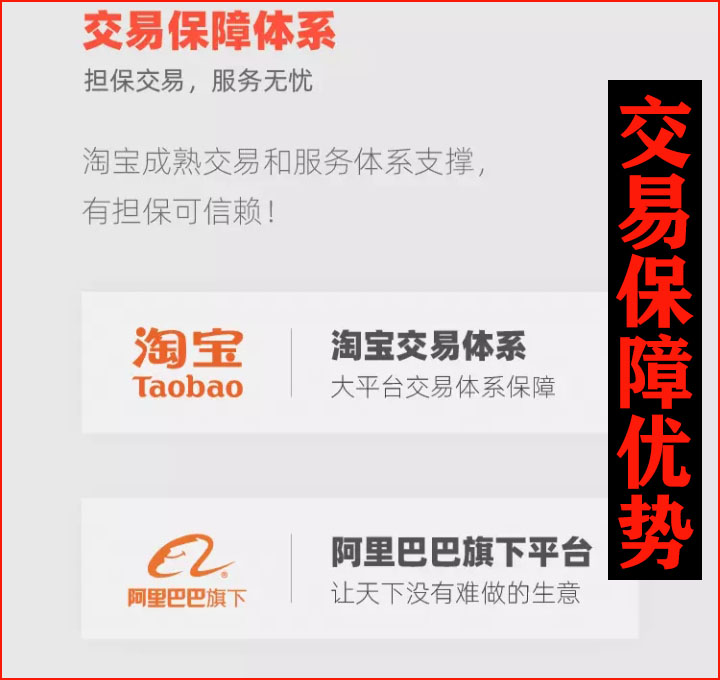 淘小铺优势很多,相对于其他社交电商平台来说,淘小铺的最大优势当然是“阿里巴巴”亲生的啦!不过具体来说,淘小铺主要有两大优势,一个是货品直供优势,还有一个就是交易保障优势。